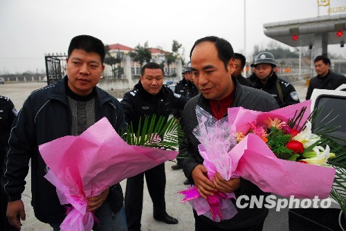 图为犯罪嫌疑人陈登安被押解回河南固始。中新社发 向明超 摄