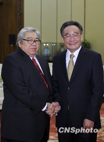 12月7日,中国全国人大常委会委员长吴邦国在北京人民大会堂会见了印尼人民协商会议主席陶菲克一行。