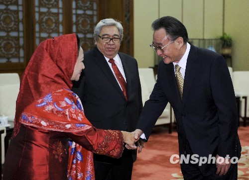 吴邦国会见印尼人民协商会议主席陶菲克一行。中新社发 廖攀 摄