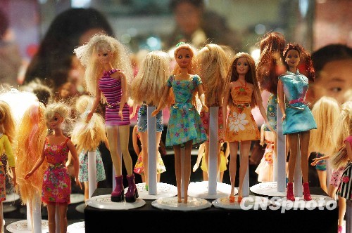 12月6日,法国珍藏版芭比中国巡回展·扬州站在京华城展出,展览分世界公主系列、经典系列、城市风情系列和好莱坞影星等系列,展示了1959年以来近千个造型各异的“芭比娃娃”。 中新社发 范友林 摄