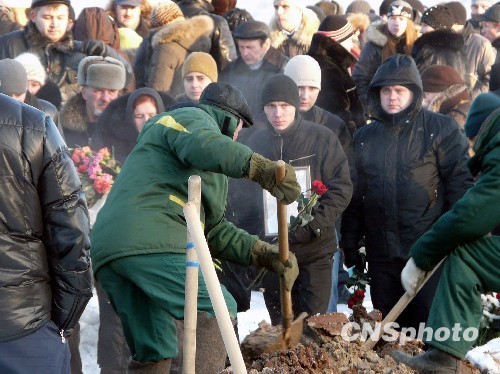 12月7日,俄罗斯彼尔姆市北郊公墓,人们为该市夜总会火灾事故的部分遇难者举行葬礼。该事故目前已导致112人死亡,俄罗斯总统梅德韦杰夫宣布当天为全国哀悼日。中新社发 田冰 摄