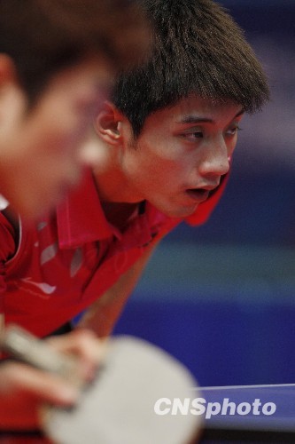 图为许昕、张继科在比赛中。中新社发 盛佳鹏 摄