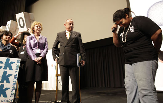 12月7日,在丹麦首都哥本哈根联合国气候变化大会如期拉开帷幕。会上一名斐济代表在谈到因海平面上升而面临消失危险的太平洋岛国时泪洒会场。