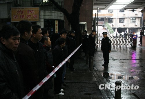 12月8日,重庆第五中级人民法院,旁观群众早早到来,等候“王天伦涉黑案”庭审。 中新社发 潘钰琳 摄