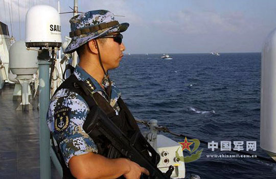中国海军护航编队特战队员保持高度警戒,随时准备应对突发情况。徐叶青 摄
