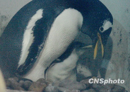 12月10日,哈尔滨极地馆南极企鹅“曼波”的新生小宝宝在哈尔滨极地馆南极企鹅岛与游客见面。世界上第一只内陆城市成功孵化的南极企鹅“曼波”产下了两枚蛋后,第一个小宝宝于12月7日凌晨破壳。中新社发 姚庭山 摄