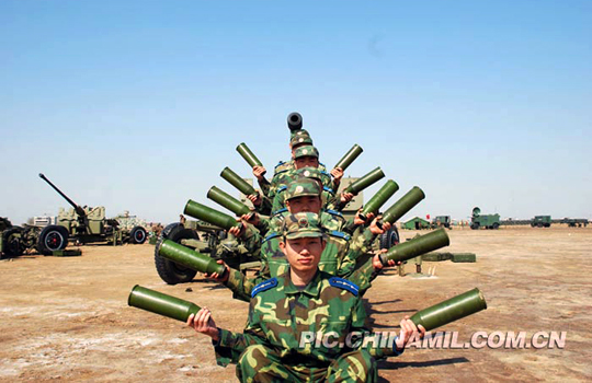 日前,北空高炮某团全员全装摩托化行军加铁路输送,机动数百里,远赴渤海湾某靶场参加实弹战术演习。在近半个月的实兵实弹对抗演习中,全团官兵一举击中、击落航模拖把10个,取得总评成绩优秀的好成绩。战场上,成绩喜人,战场下同样精彩。在休息时刻,兴致勃勃的官兵们纷纷即兴“表演”起来。(安雷 安策 摄)
