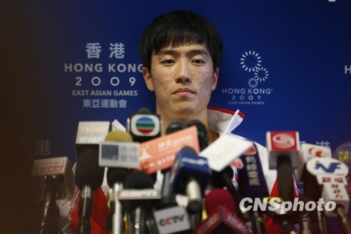 图:刘翔东亚运动会夺冠 接受媒体群访(3)
