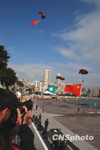 图:“八一”跳伞队澳门上演“仙女下凡”(3)