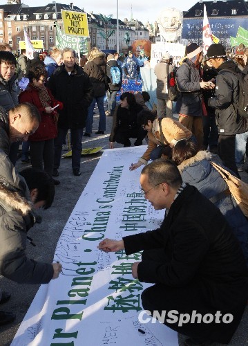 图为在哥本哈根中国“环保先锋行活动”吸引众多环保人士签名。中新社发 钱兴强 摄