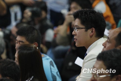 图为霍启刚到比赛现场观看郭晶晶比赛。中新社发 盛佳鹏 摄