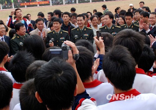 图:“神七”航天员与南宁中学生互动(2)