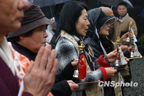 2009年12月13日,来自南京毗卢寺以及日本东本愿寺、灵云寺等寺庙的数十位僧人和佛教信徒,和南京大屠杀幸存者代表一起,在侵华日军南京大屠杀遇难同胞纪念馆祭场内举行和平法会,悼念侵华日军南京大屠杀遇难同胞。中新社发 阿董 摄
