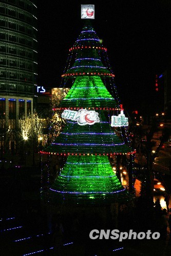图:巨型饮料瓶“圣诞树”亮相昆明街头(2)