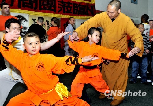 嵩山少林寺访美团一行14人在少林慈善福利基金会秘书长永胜大师和少林寺武僧总教头释延鲁大师率领下于12月13日下午抵达纽约,当晚,访问团一行在纽约少林寺海外总会观看、指导纽约少林弟子的武功表演。