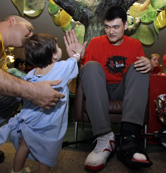 12月14日,美国休斯敦,姚明和几位休斯敦火箭的队友来到一家儿童医院看望患儿,并为孩子们送去礼物。