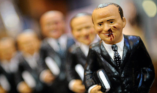 图为贝卢斯科尼遇袭后面部流血造型的玩偶出现在一家手工艺品商店。