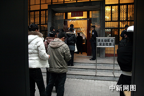 图为参与旁听者正在排队经过安检。 银雪 摄