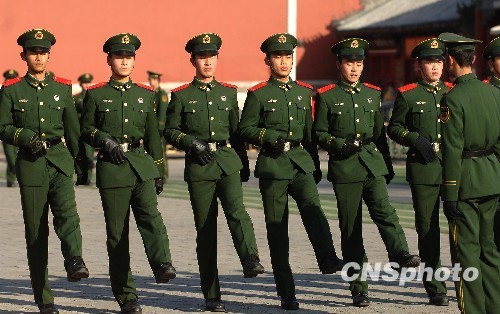 天安门武警冬季在故宫午门外露天练兵。中新社发 邹宪 摄