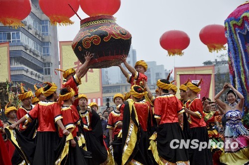 当地的艺术团体举行了内容丰富、精彩纷呈的酒文化巡游表演。中新社发 陈涌徐伟 摄
