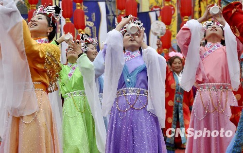当地的艺术团体举行了内容丰富、精彩纷呈的酒文化巡游表演。中新社发 陈涌徐伟 摄