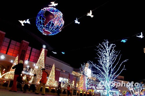 北京“蓝色港湾第二届灯光节”现场灯光璀璨。中新社发 李文明 摄