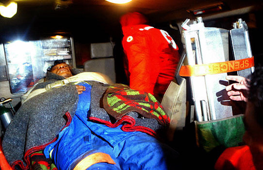 图为12月18日黎巴嫩的黎波里一港口,救援人员救起沉船事件的幸存者。
