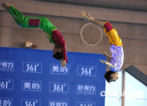 组图:武汉首届跳水明星赛 滑稽跳水逗人乐(5)