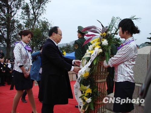 图为蒋孝严向烈士敬献花篮。中新社发 黄艳梅 摄