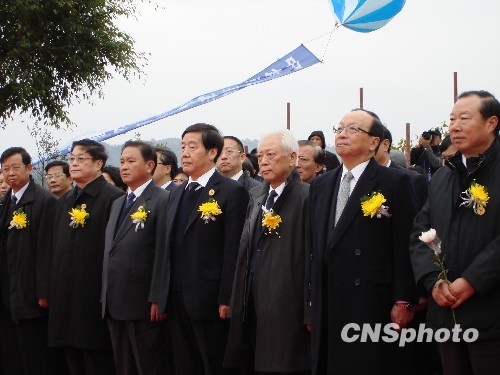 全国人大常委会副委员长、民革中央主席周铁农(右三),中国国民党副主席蒋孝严(右二),海协会副会长王在希以及海峡两岸参加过昆仑关战役的老战士代表、抗日著名将领亲属代表等各界人士千余人出席大典,共同缅怀抗日先烈。中新社发 黄艳梅 摄