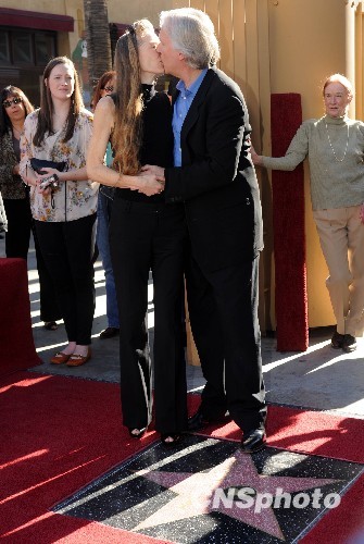 图为卡梅隆和第五任妻子苏茜·爱米斯在授星仪式上接吻。中新社发 张炜 摄