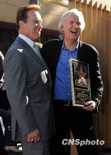 图为当年的好搭档、加州州长施瓦辛格亲临现场为好友卡梅隆捧场。中新社发 张炜 摄