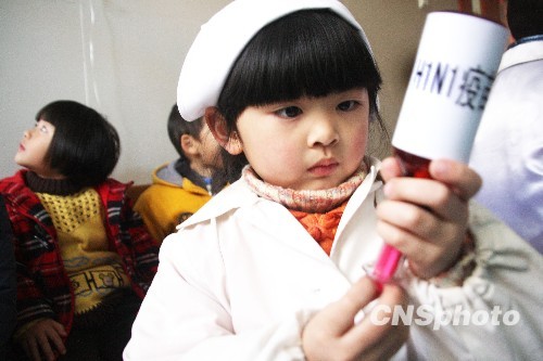 12月18日,江西铜业集团公司德兴铜矿幼儿园中区分园,举行了一次幼儿预防“甲型流感”模拟演练。当天下午,小朋友来到该园设立的幼儿“小医院”,自己扮演医生、护士和病号,举行幼儿预防“甲型流感”模拟演练活动。