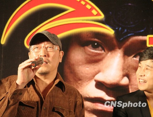 倪大红和小沈阳在影迷见面会上。中新社发 王振 摄