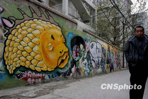 武汉小巷深处涂鸦墙。中新社发 孙新明 摄