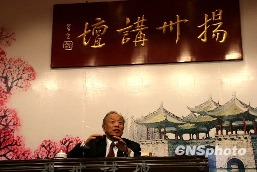 李肇星登临“扬州讲坛”。中新社发 崔佳明 摄