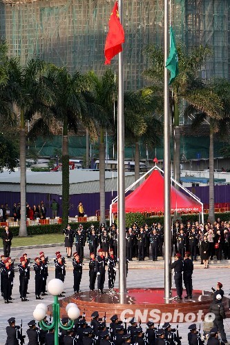 澳门特区举行隆重升旗仪式。中新社发 洪少葵 摄