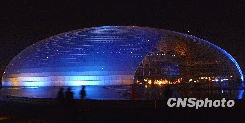 国家大剧院试灯迎两周岁生日。中新社发 玉龙 摄
