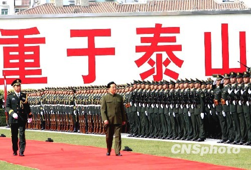 中共中央总书记、国家主席、中央军委主席胡锦涛检阅驻澳部队。中新社发 张勤 摄