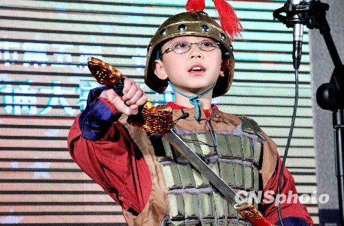12月20日,江苏苏州市第五届“长发杯”少儿古诗词朗诵大赛总决赛在苏州拉开帷幕,44个小学低、中、高年级组别的近200名选手参加了决赛。许多参赛队除配合选手古诗词朗诵外,将舞蹈、歌唱、乐器演奏、书画等才艺融入到古诗词表演中,让人耳目一新。据了解,该活动旨在弘扬中华民族传统文化,抵制“灰色童谣”,为苏州少年儿童营造一个健康、向上的人文环境。