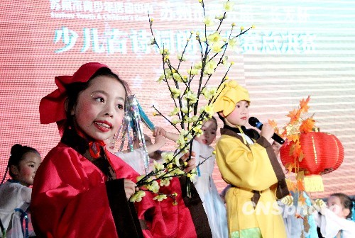苏州少儿古诗词朗诵大比拼。中新社发 王建中 摄