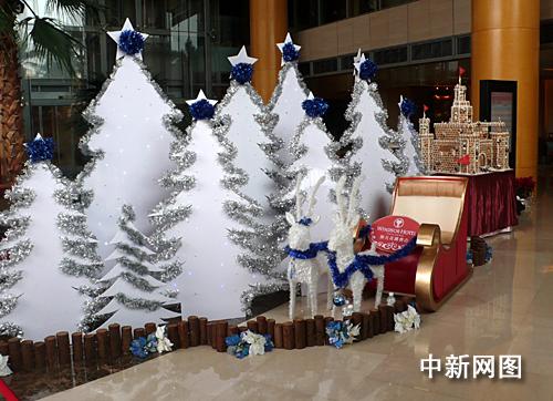 大陆海协会会长陈云林一行将入住的裕元酒店大堂中的圣诞树。