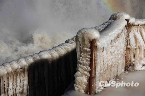 组图:黄河壶口瀑布冰凌成型