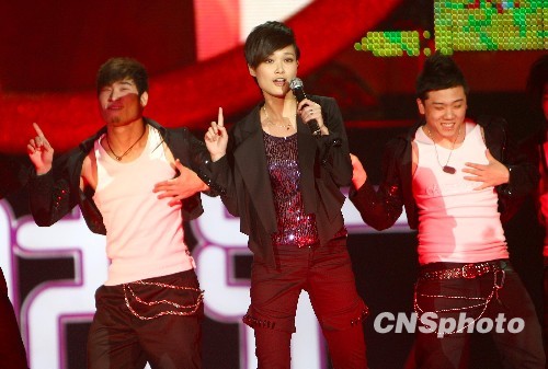 李宇春的歌曲专辑《李宇春》获得最畅销创作专辑,并现场得到了260万网友支持,感谢歌迷还要继续创作。中新社发 杜洋 摄