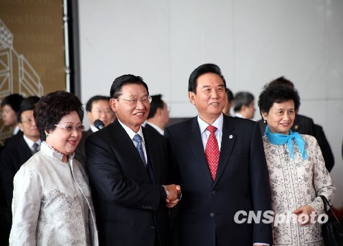 12月21日中午,大陆海协会会长陈云林一行抵达台中市,台湾海基会董事长江丙坤在裕元酒店欢迎陈云林一行。