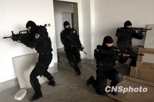 安徽淮北市公安特警以冬训促冬季巡逻防控工作。中新社发 万善朝 摄