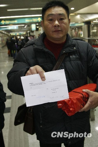 12月22日早晨,上海地铁1号线因为突发供电触网跳闸故障,造成1号线停运。在运营调整恢复中,两列列车发生侧面碰撞,造成大批乘客滞留。目前无乘客受伤。图为乘客出示地铁方面发放的致歉信。中新社发 宣克炅 摄
