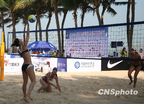 亚洲沙排锦标赛在椰城假日海滩开战。中新社发 付美斌 摄