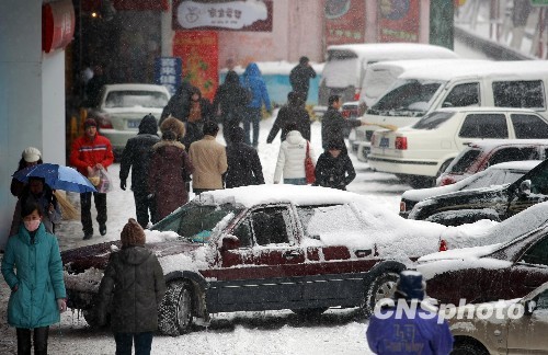 12月23日,新疆乌鲁木齐街头,突降的大雪给市民出行造成诸多不便。中新社发 刘新 摄