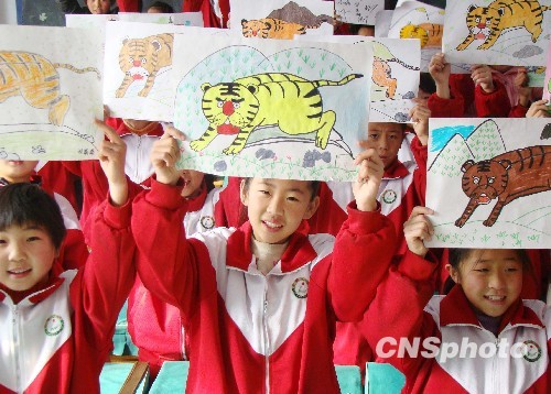 山东120名虎娃画虎迎虎年。中新社发 刘智峰 摄
